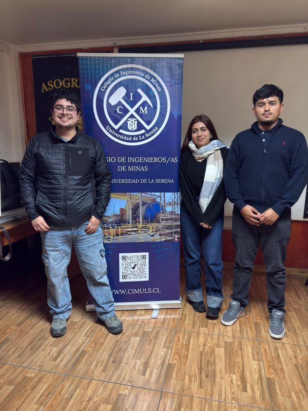Los alumnos Antonia Rojas (tercer año), Kevin Campillay (tercer año) y José Huerta (quinto año) trabajaron mano a mano con pequeños productores mineros, tanto de extracción como de procesamiento, en una iniciativa organizada por la Asociación Minera de Andacollo y el Colegio de Ingenieros de Minas Cimuls, con el auspicio de Minera Dominga.