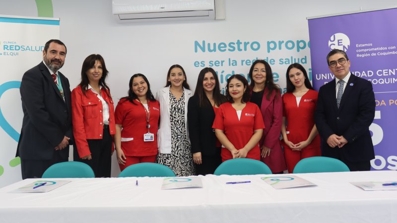 Con el objetivo de fortalecer la formación académica de las y los estudiantes de la carrera de Obstetricia y Puericultura, el Vicerrector Regional de la Universidad Central Región de Coquimbo, Jaime E. Alonso, junto a la directora de Campos Clínicos, Marcela Riveros, firmaron un importante convenio asistencial docente con Clínica RedSalud Elqui, representada por su gerente Nilo Lucero.