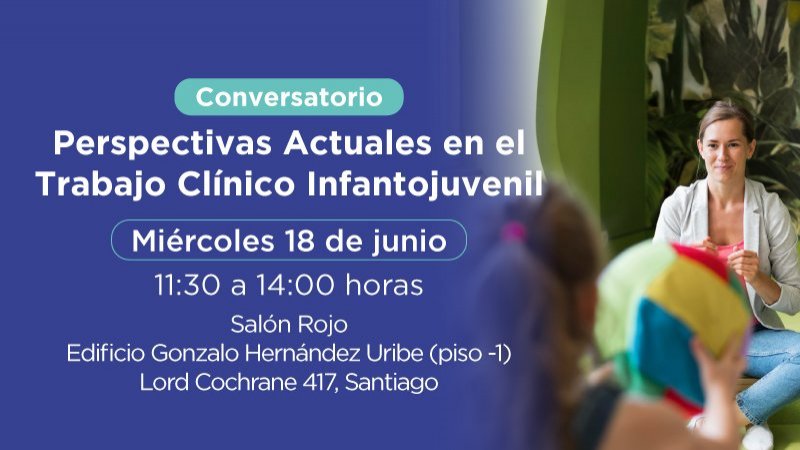 El día 18 de junio desde las 11:30 a las 14:00 horas, en el Salón Rojo, edificio Gonzalo Hernández Uribe (Lord Cochrane 417 Santiago), la carrera de Psicología ha organizado el conversatorio, que busca reflexionar en torno a los desafíos y enfoques contemporáneos en la clínica infantojuvenil, a través del diálogo con destacados y destacas profesionales del área, incorporando el quehacer ético que nos atañe como profesionales.