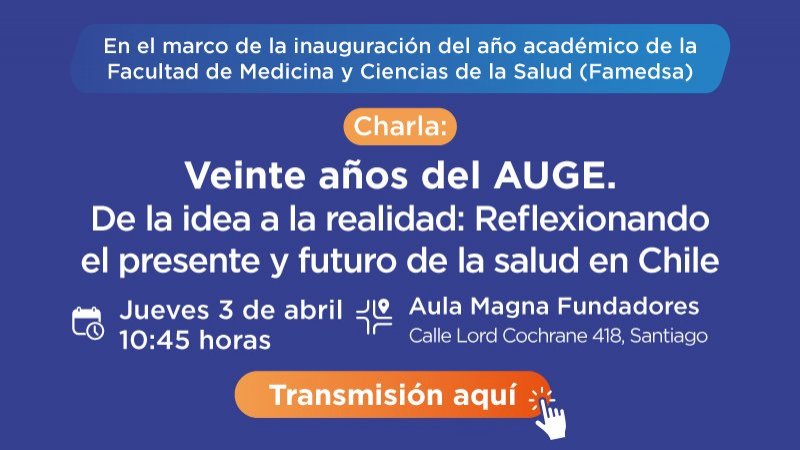 La conferencia, que se desarrollará en el Aula Magna «Fundadores» del Centro de Extensión de la universidad (ubicado en calle Lord Cochrane 418, Santiago), ofrecerá un análisis sobre el impacto y los avances del sistema de Garantías Explícitas en Salud (AUGE) en el país, que cumple dos décadas de implementación. Sandoval Orellana abordará cómo el AUGE, desde su creación, ha transformado la atención sanitaria en Chile, brindando acceso a un mayor número de personas a tratamientos y procedimientos esenciales para la salud.