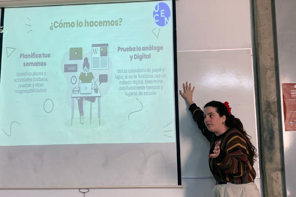 Durante la sesión, se destacó la gestión del tiempo, eje central del taller. Los sicólogos indicaron que planificar horarios, priorizar tareas y utilizar herramientas como calendarios y la Matriz de Eisenhower permite mejorar la autogestión y disminuir la procrastinación.