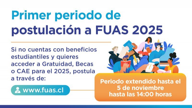 Plazo extendido hasta el 5 de noviembre a las 14:00 horas, para completar el Formulario único de Acreditación Socioeconómica FUAS, para postular a GRATUIDAD, BECAS o CAE.