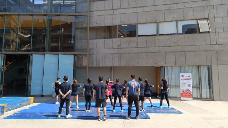En esta oportunidad, en la explanada del edificio Vicente Kovacevic II, se realizó una demostración en vivo del Taller de Cheerleader, liderados por el profesor Matías Valdivia. En esta presentación, las y los estudiantes pudieron observar la demostración de esta disciplina, caracterizada por el uso organizado de música, baile y gimnasia. Esta disciplina ha pasado a considerarse una actividad deportiva importante, con miras a querer formar una selección universitaria.