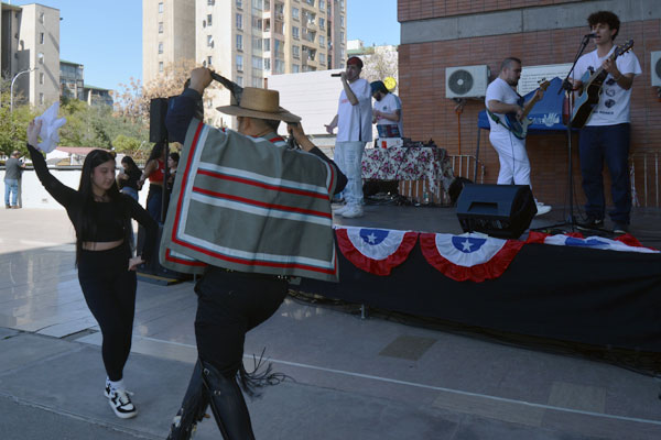 La Federación de Estudiantes de la Universidad Central (Feucen) realizó el miércoles 10 de septiembre una celebración de Fiestas Patrias que reunió a estudiantes, docentes y autoridades en la explanada ubicada entre los edificios Vicente Kovacevic I y II. La actividad surgió como iniciativa de la nueva Feucen para generar espacios de encuentro y comunidad, después de varios años sin una organización estudiantil vigente. La jornada contempló bailes folclóricos, competencias de canto, carreras en saco y de tres pies, además de juegos como la sillita musical y una yincana. También participaron agrupaciones culturales, entre ellas la Academia Folclórica Gladys Lloncón, y se realizó un campeonato de cueca. Como parte del programa se presentó el freestyler Martín «Acertijo», invitado por la Unidad de Extensión Cultural de la Dirección de Comunicaciones Corporativas (DCC).