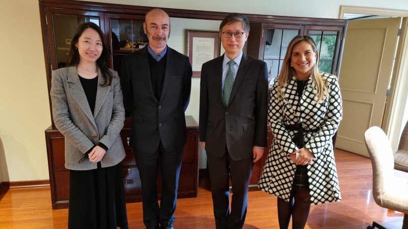 La autoridad coreana se reunión con el Vicerrector Académico, Juan Pablo Prieto y la Directora de Relaciones Internacionales, Karen Molina.