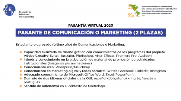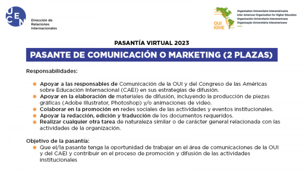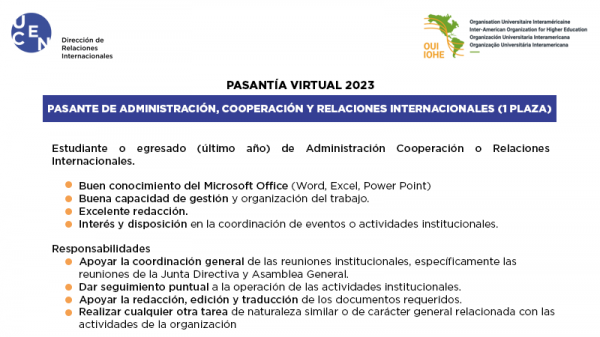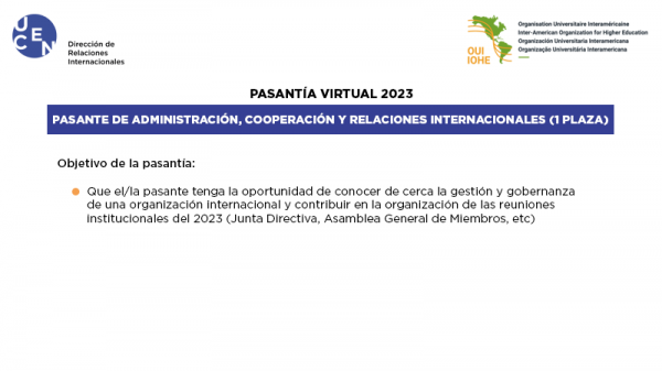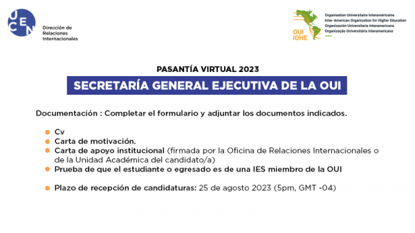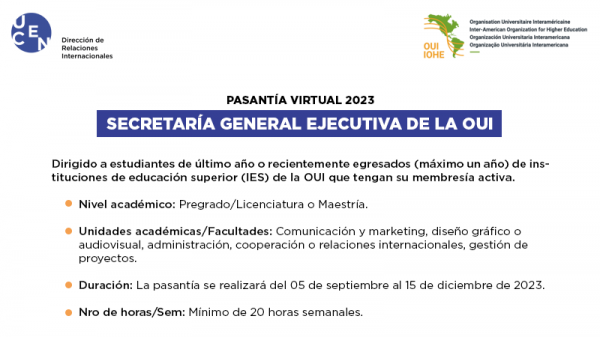 DRI invita a postular a las Pasantías Virtuales de la Secretaría General Ejecutiva de la Organización Universitaria Interamericana (OUI)
