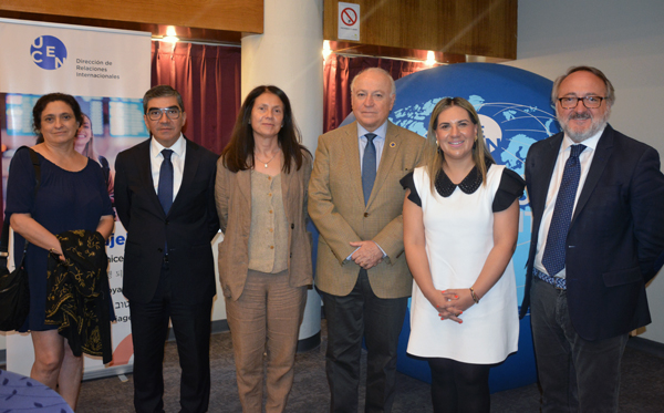 La ceremonia estuvo presidida por el Rector de la UCEN, Santiago González Larraín, acompañado de la Directora de Relaciones Internacionales, Karen Molina, y el Director Académico Global de la Universidad Internacional de La Rioja, España (UNIR), Manuel Herrera. La ocasión contó también con la participación de la Vicerrectora de Desarrollo Institucional, Carolyn Palma, y la Vicerrectora de Investigación, Innovación y Postgrados, Soledad Torres; además de autoridades académicas, docentes, estudiantes y apoderados que se reunieron para celebrar el inicio de nuevas oportunidades formativas en el extranjero.