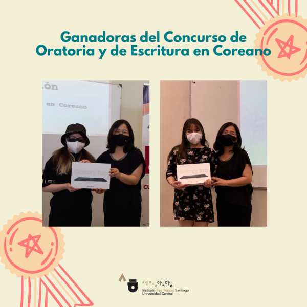Durante la actividad, los y las estudiantes recibieron sus certificados de aprobación, además del libro “Hwaiting: Palabras Intraducibles de la Lengua Coreana” como regalo de finalización. También se premió a un estudiante sobresaliente por nivel quienes recibieron como premios distintos libros de aprendizaje del idioma, además de un certificado de reconocimiento. Por otra parte, se hizo entrega del premio, una Galaxy Tab S7, enviado directamente por la Fundación Instituto Rey Sejong, para los primeros lugares del Concurso de Oratoria y de Escritura en Coreano realizado en julio de 2021. Para finalizar la actividad, los estudiantes compartieron cuál ha sido el impacto en su vida y los cambios que han notado al estudiar el idioma y la cultura de Corea.