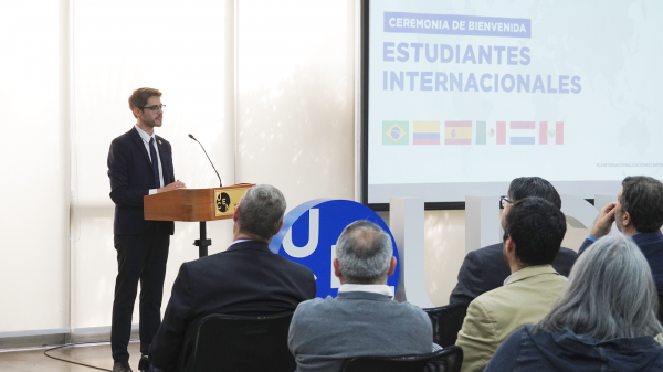La ceremonia contó con la participación de diversas autoridades universitarias, entre ellas el Presidente de la Junta Directiva, Dr. Patricio Silva; el Vicerrector Académico, Emilio Oñate; y el Coordinador de Internacionalización, Diego Vidal, quienes dieron la bienvenida a las y los estudiantes con palabras de reconocimiento, entusiasmo y compromiso institucional.