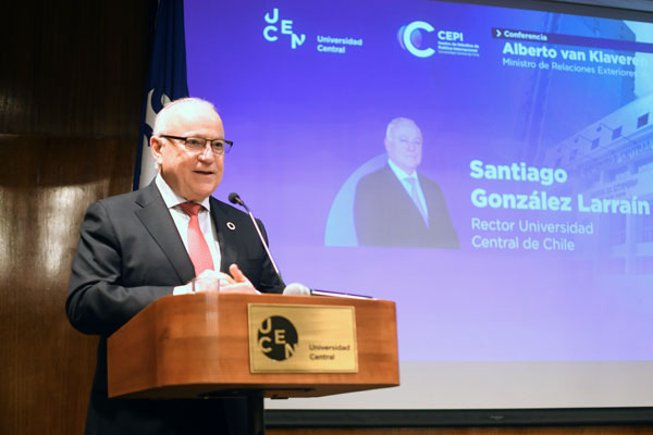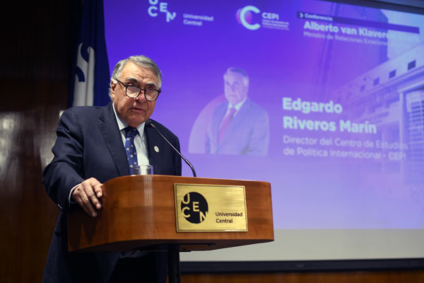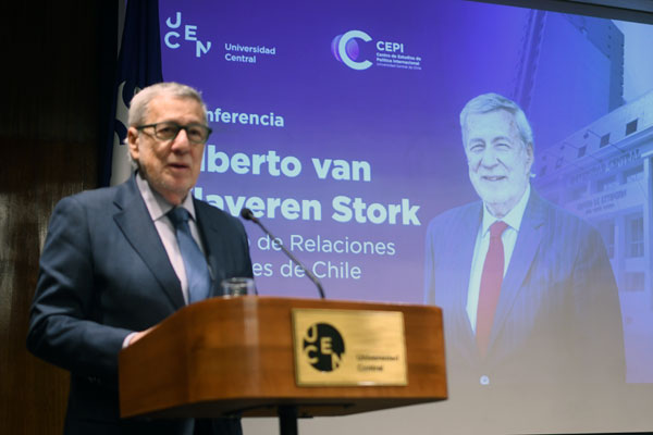 En su intervención, el canciller Alberto van Klaveren felicitó a la Universidad Central por la puesta en marcha del CEPI: «Es un paso relevante en un momento en que necesitamos más reflexión, en que necesitamos más herramientas para analizar esta realidad convulsa que estamos enfrentando en el ámbito internacional», expresó. Agregó que se trata de «una muy buena noticia» y manifestó su expectativa respecto a las contribuciones académicas que genere: «Esperamos ansiosamente los primeros enfoques y aportes que nos puedan hacer en las distintas áreas que configuran la realidad internacional».