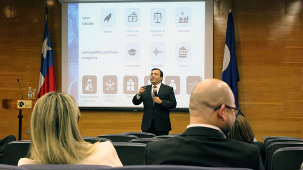 En las palabras de bienvenida, el Contralor Gabriel Peralta se refirió a la importancia de que todos los miembros de la comunidad universitaria estén al tanto de la actualización del Modelo de Prevención del Delito de la Universidad, ya que, a partir de la modificación legal que entró en vigencia el 1 de septiembre pasado «la Universidad puede ser penalmente responsable, en caso de un delito—que ojalá no ocurra—, y la única manera de proteger a la Universidad de esa responsabilidad penal, es este Modelo”. Agregó también que «Cualquier modelo de gestión cobra vida con las personas, y es por eso que quiero agradecer la colaboración de todos ustedes en el desarrollo de esto, puesto que es clave para nuestra institución». Explicó que el ajuste al Modelo hace que éste sea ahora mucho más robusto y profundo en términos de la cantidad de controles y riesgos que cubre.