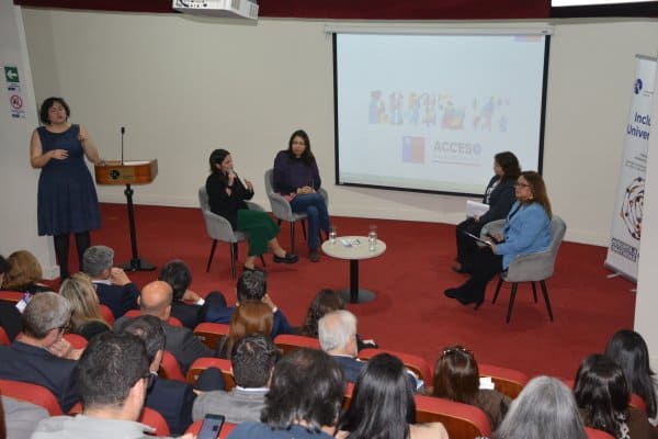 Tras las palabras de las autoridades, se dio paso a un conversatorio compuesto por Alejandra Maldonado, jefa de la Unidad de Inclusión del DEMRE y Nicol Ojeda, encargada de Inclusión, División de Información y Acceso de la Subsecretaría de Educación Superior del Ministerio de Educación. Ambas acompañadas de la propia Marcela Godoy presentaron cifras respecto de los desafíos y oportunidades que supone, para la educación, el ingreso y permanencia de las personas en situación de discapacidad.