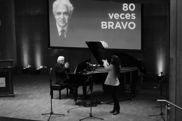 La actividad «80 veces BRAVO» fue organizada por el área de Extensión Cultural de la Dirección de Comunicaciones Corporativas para homenajear el recorrido artístico del concertista, quien se integró a la planta académica de la Universidad Central en septiembre de 2019 para impartir la cátedra «Música y Poesía», a la cual pueden asistir transversalmente todos los alumnos de la casa de estudios que quieran cursarla.