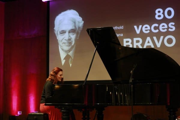 Artistas de diversas disciplinas se dieron cita en la Universidad Central junto a sus directivos, académicos, funcionarios y estudiantes para celebrar los ochenta años de vida del pianista chileno Roberto Bravo González.