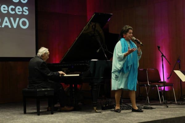 La cantante Marta Contreras y el pianista ícono del jazz Giovanni Cultrera improvisaron también en el escenario del aula magna, interpretando la icónica canción de Édith Piaf «Non, je ne regrette rien».