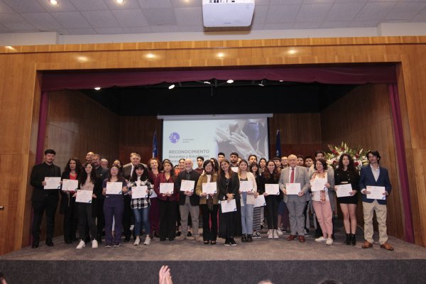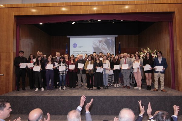 Para continuar con las premiaciones, subió al escenario el vicerrector académico Emilio Oñate Vera y la decana de la Facultad de Educación y Ciencias Sociales, Sonia Fuentes Muñoz, quienes otorgaron los diplomas a: