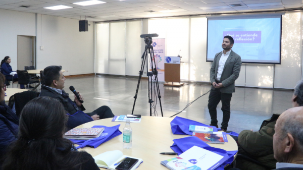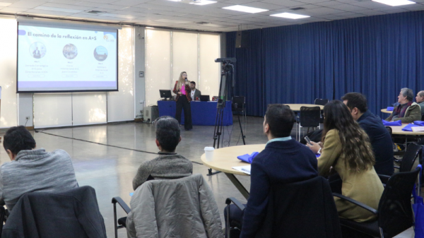 El taller estuvo a cargo de la directora de Vinculación con el Medio (VCM), Claudia Contreras Águila, y el encargado de la Unidad de A+S, Darwin Lillo Ayala. Durante la jornada, los docentes profundizaron en el concepto de reflexión en A+S, abordando la estrategia de reflexión como eje articulador y la presentación de actividades y dinámicas prácticas a través de la cual es posible abordar la reflexión en las y los estudiantes.