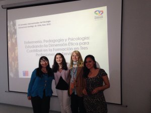 La ponencia que presentó la docente Muñoz está dentro del simposio dirigido por la Dra. Diana Pasmanik V., (directora proyecto SOC 1110 modalidad Anillos) "Enfermería, Pedagogía y Psicología: estudiando la dimensión ética para contribuir en la formación en tres profesiones de servicio".
