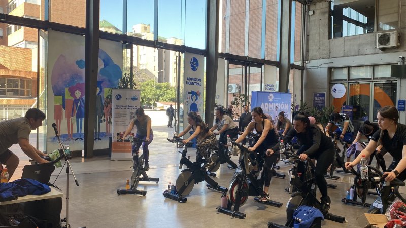 La demostración fue dirigida por el profesor Christopher Plaza, profesor de spinning, quien guió a los y las participantes por una sesión llena de energía, música motivadora y trabajo físico constante. Durante una hora, quienes participaron pudieron pedalear con entusiasmo, siguiendo las distintas intensidades y movimientos propuestos, en una jornada que dejó a más de alguno/a con ganas de repetir la experiencia.