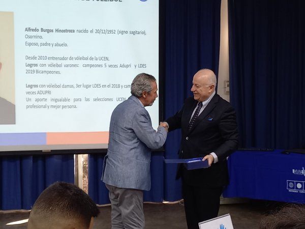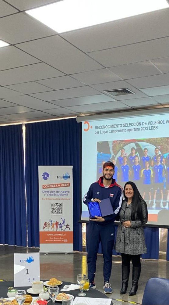 En la oportunidad, se entregó un reconocimiento al profesor Alfredo Burgos, entrenador de la selección de voleibol, por su trayectoria, constancia y entrega. Además, se galardona al capitán del equipo Yordan Araya Farías, estudiante de personal trainer, federado por la selección de voleibol nacional y quien, junto a su equipo, obtuvo bicampeonato en las Liga Deportiva de Educación Superior (2019) y este primer semestre 2022, el 3er lugar en la misma competencia de la LDES.