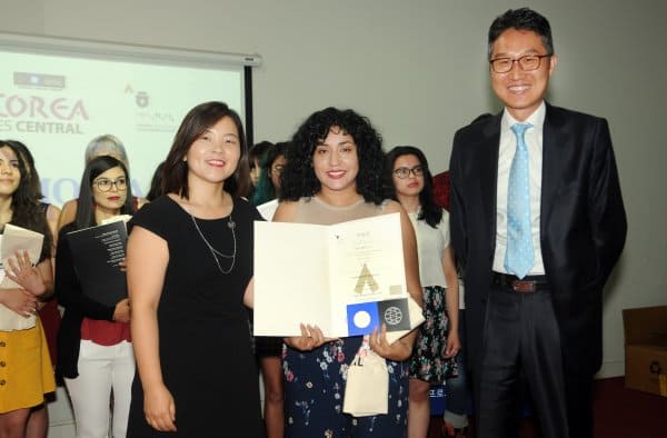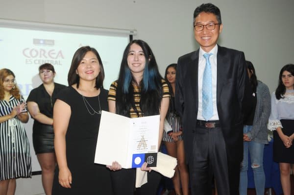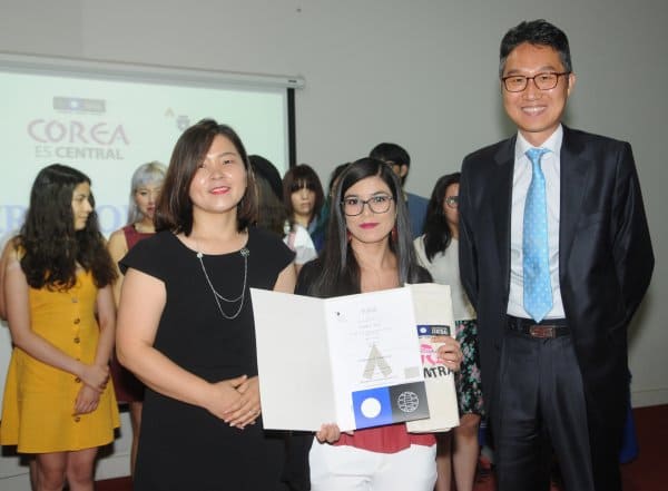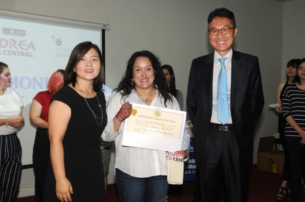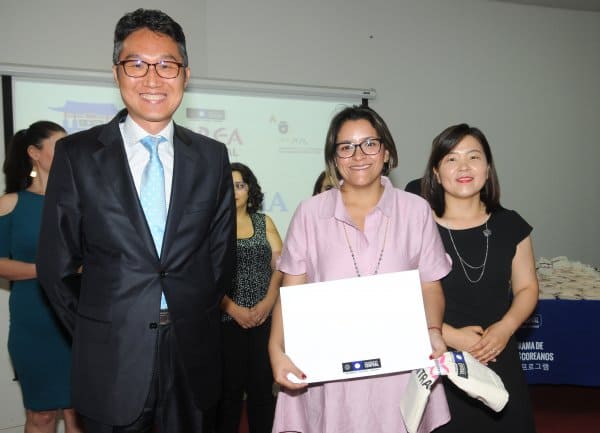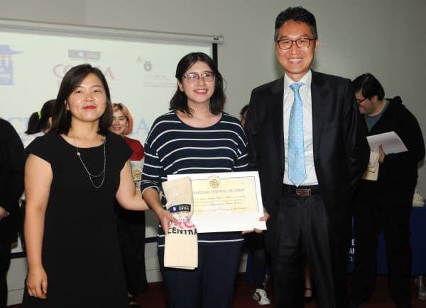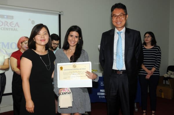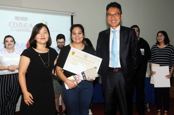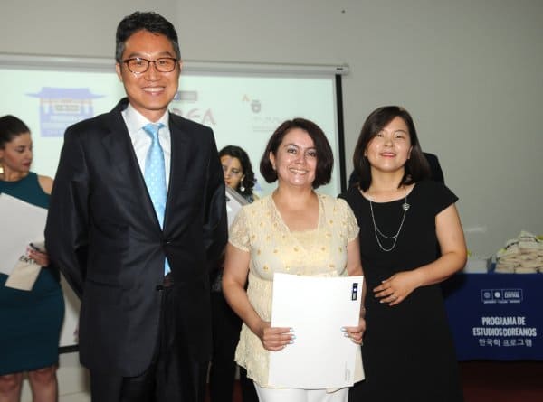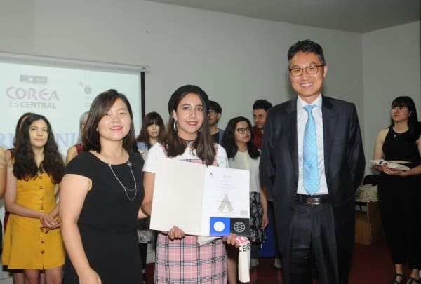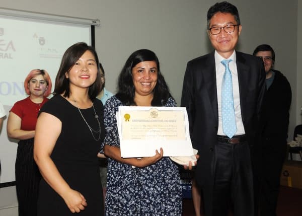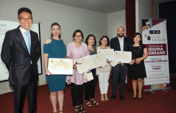 La primera generación del Diplomado en Idioma Coreano Básico también recibió sus diplomas y la representante Ivania Menares, agradeció las diversas oportunidades que brinda el programa, además de la posibilidad de hacer continuidad de estudios, lo que le permitirá a ella realizar el Magíster en Estudios Coreanos a partir de este año.