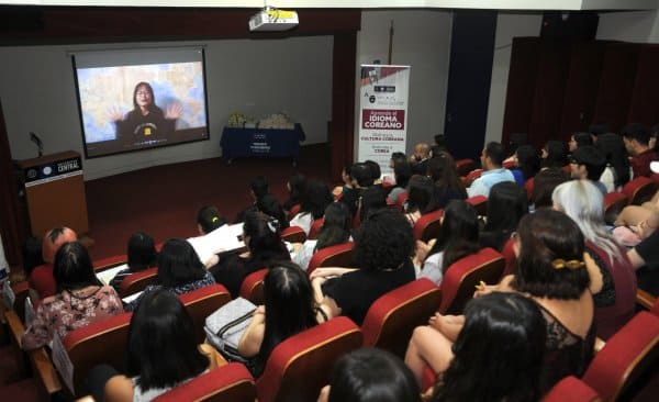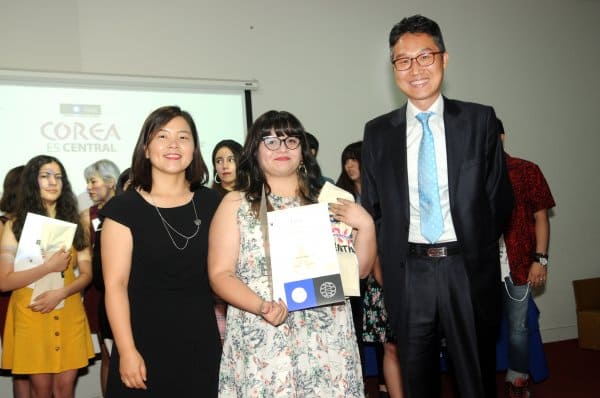 Desafortunadamente, la profesora del Instituto Rey Sejong Santiago no pudo estar presente, pero envío un video de felicitaciones a todos los estudiantes que lograron aprobar sus respectivos cursos. Macarena Alvarado, ganadora del Concurso de Oratoria, contó su experiencia en el viaje al programa “Experiencia Cultural y Académica en Corea para estudiantes sobresalientes de Instituto Rey Sejong” y motivó a los estudiantes a participar en el concurso destacando que el aprendizaje logrado es incalculable.