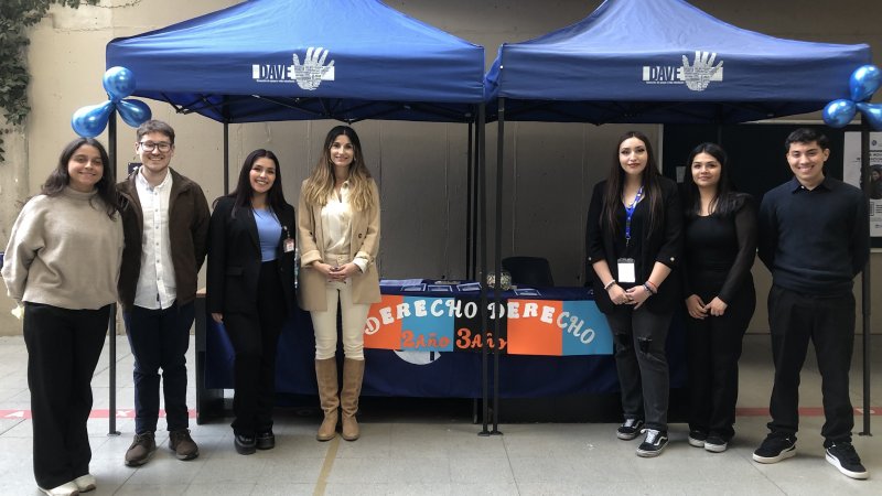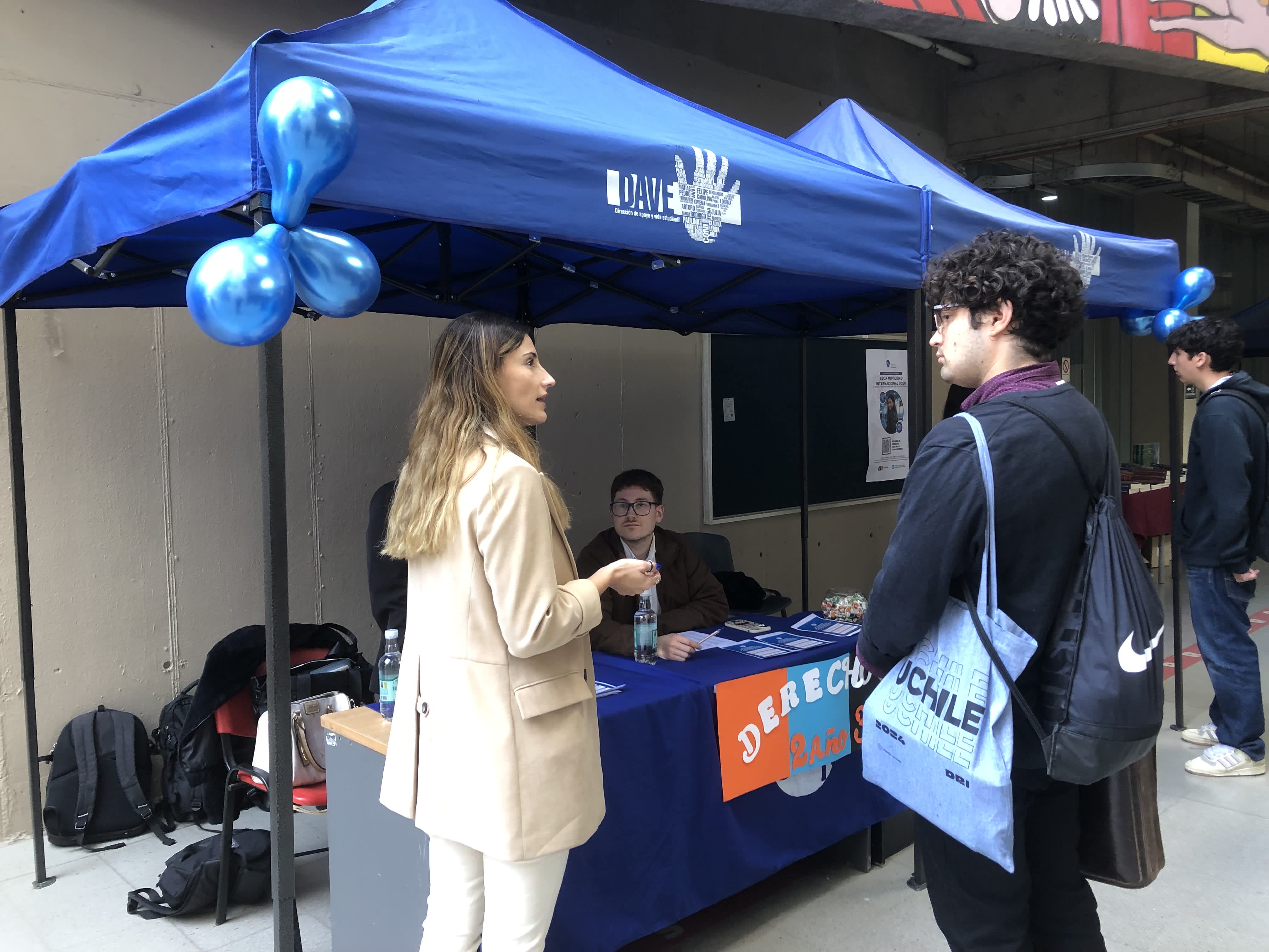 Durante dos jornadas en abril las y los ayudantes de aprendizaje y acompañamiento de Derecho pusieron un stand en el patio central de GHU para presentar sus labores y responder dudas de las y los estudiantes, tanto de las jornadas diurna como vespertina.