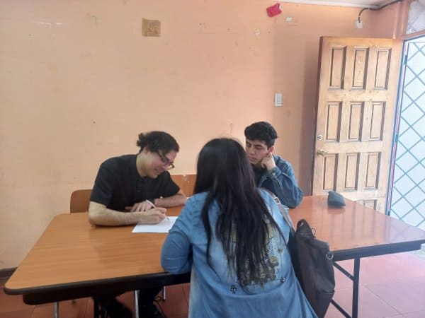 De forma voluntaria cada semana asistieron un par de estudiantes de los ramos de Clínica Jurídica así como docentes, los que iban variando, a excepción de dos estudiantes que estuvieron presente los siete sábados: Andrés Santibáñez y Elizabeth Sunko, ambos de quinto año de Derecho. Andrés lo explica así: ´”He tenido el privilegio de poder venir a apoyar tanto a la comunidad como a la Universidad, solucionar problemas jurídicos y materializar lo teórico a la práctica”.
