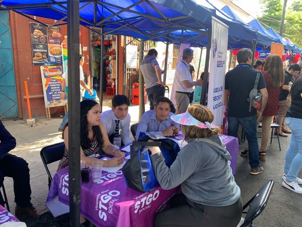 La Clínica Jurídica de la FACDEH se hizo presente en la Feria de Servicios Sociales que organizó la Municipalidad de Santiago en el barrio Huemul, donde docentes y estudiantes de Trabajo Social y Derecho atendieron a los vecinos y vecinas.