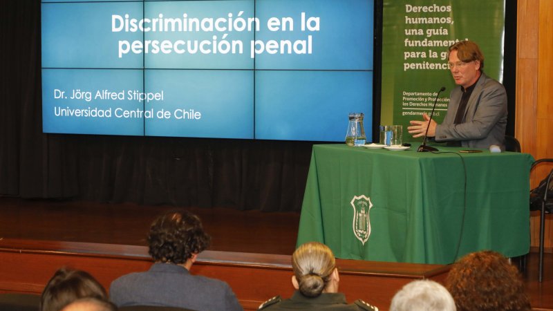 El investigador del área de Derecho Penal y Criminología, Dr. Stippel, se refirió a la discriminación en la persecusión penal, instancia en la que destacó que “Gendarmería no es una tercera policía”, por lo que “asignarle funciones de investigación va en contra de las Reglas Mandela, el Protocolo de Estambul y el protocolo de Minnesota. Gendarmería no es entidad independiente cuando investiga delitos al interior de las cárceles por eso asignarles esa función viola normativa internacional”, advirtió y dijo que las “Reglas Mándela habla del importante función social que cumple” el organismo.