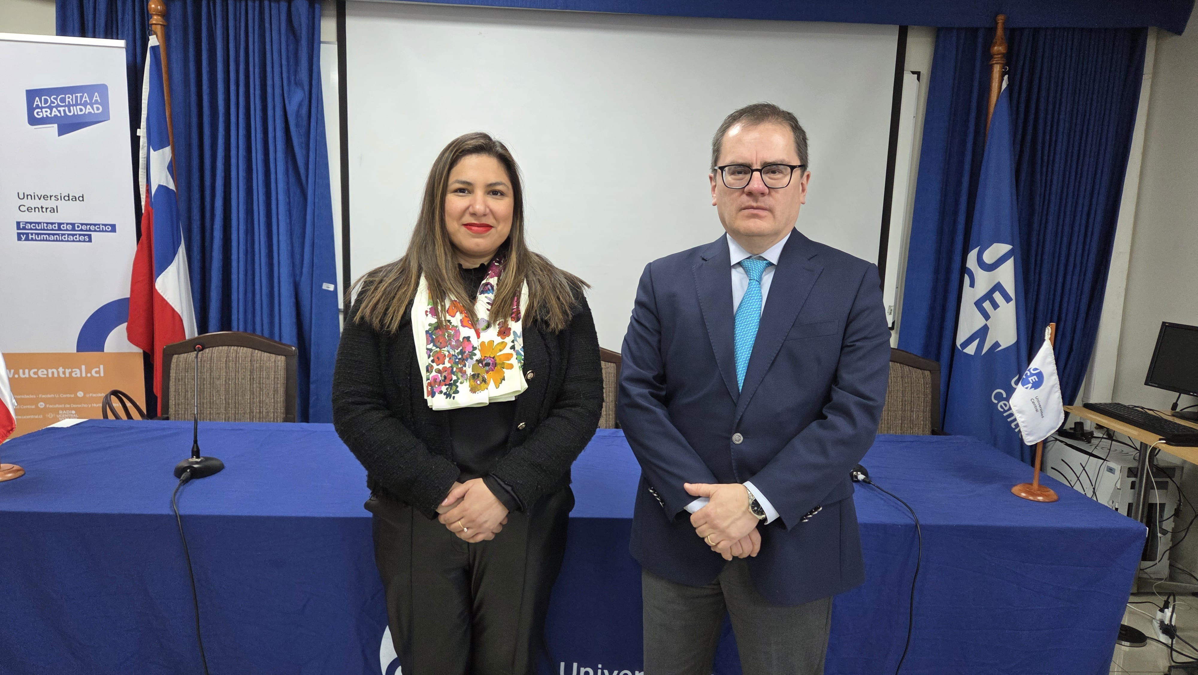 El Dr. Oviedo Albán, quien realizó su doctorado en Chile, compartió su satisfacción por el regreso y el contacto con la comunidad académica local. "Primero que todo, encantado de haber venido otra vez a Chile", expresó, destacando la influencia del derecho chileno en la normativa colombiana, especialmente a través del Código Civil, que sirvió de inspiración a finales del siglo XIX.