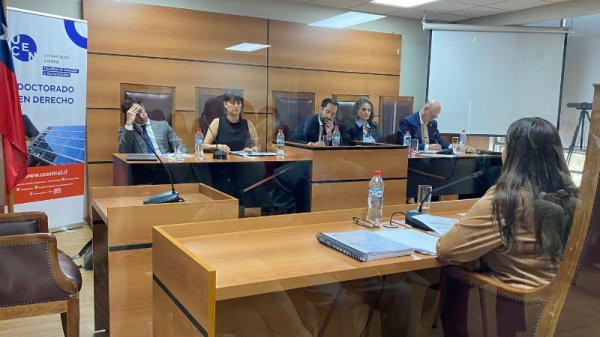 En una Sala de Litigación llena de autoridades, docentes, estudiantes, familiares y amigos, la Dra. Tapia obtuvo un sobresaliente que le permitió obtener el grado universitario máximo, frente a una comisión conformada por el director del Doctorado en Derecho U. Central, Dr. Pablo Contreras; la académica de la Universidad Austral de Chile, Dra. Carolina Bruna; el miembro del claustro UCEN, Dr. Federico Szczaranski Vargas; su profesora guía, Dra. María Angélica Benavides Casals; y su co guía, el Decano de Derecho de la Universidad de Sevilla, Dr. Fernando Llano Alonso.