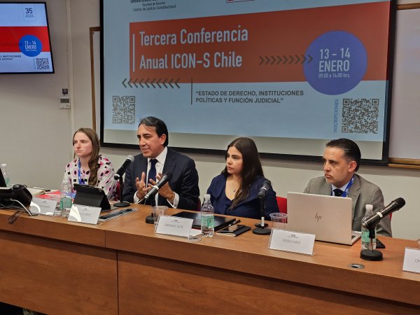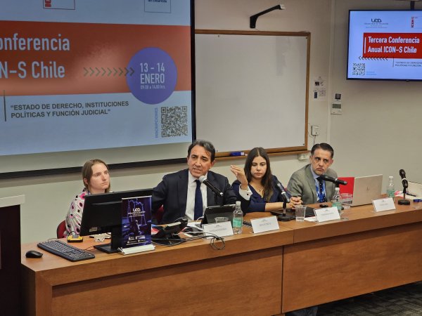 Durante el lunes 13 y martes 14 de enero, la Universidad del Desarrollo (UDD) acogió el tercer encuentro anual del Capítulo Chileno de la Sociedad Internacional de Derecho Público (ICON-S). Bajo el título Estado de Derecho, Instituciones Políticas y Función Judicial, el evento reunió a más de 100 expertos en Derecho Constitucional y Público para analizar temas como el constitucionalismo chileno, derechos humanos, independencia judicial y organismos reguladores económicos. En representación de la Universidad Central (UCEN), participaron destacados académicos y doctorandos, consolidando la posición de la institución como referente en Derecho Público.