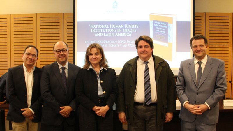 La directora del Magíster en Derecho Público, Dra. María Angélica Benavides Casals, participó el martes 7 de mayo en la presentación del libro National Human Rights Institutions in Europe and Latin America, editado por el profesor de Derecho UC Sebastián López, el académico Manuel Núñez, de la Universidad Católica de Valparaíso, y Jan Wouters, de la Universidad Católica de Lovaina (Bélgica). La académica de Derecho y miembro del Claustro Doctoral se refirió a la obra junto a Sergio Micco, académico de la Universidad de Chile y exdirector del Instituto Nacional de Derechos Humanos (INDH).