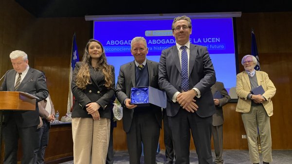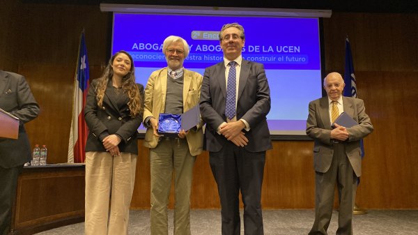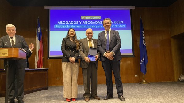 El 16 de octubre se celebra el Chile el Día del Profesor. En ese contexto, un momento emotivo del evento fue el homenaje a 11 docentes que han dedicado décadas a la formación de abogados/as centralinos/as. Este reconocimiento público resaltó la trayectoria y compromiso de quienes han sido parte fundamental de la historia de la Facultad: Bracey Wilson Volochinsky (desde 1983); Edgardo Riveros Marín (desde 1984, con algunas interrupciones); Neville Blanc Renard (desde 1985); Fidel Reyes Castillo (ingresó en 1985 y fue el primer Decano, volvió el año pasado a hacer clases); Patricia Muñoz Valdés (desde 1989, fue la única que no pudo asistir por situaciones personales); María Victoria Valencia Mercaido (desde 1991); Isabel González Ramírez (desde 1992); Óscar Torres Sagal (el primer abogado centralino es también profesor desde 1994); María Alejandra Rojas (también centralina, la jueza comenzó haciendo ayudantías desde su segundo año de carrera. En 1995 se convirtió en profesora titular); Ministra Dobra Lusic Nadal (desde 1996) y el profesor Ricardo Núñez Sandoval (quien nos acompaña desde 1998).