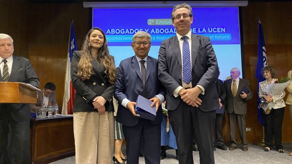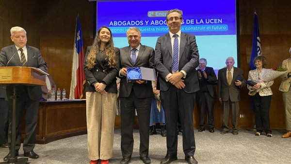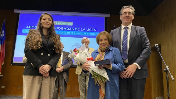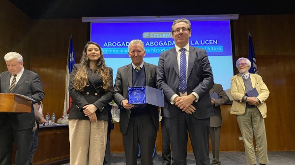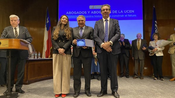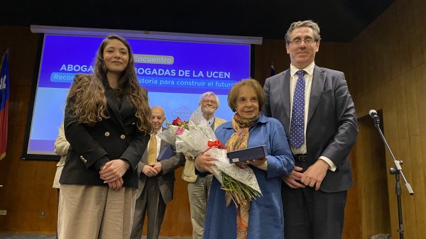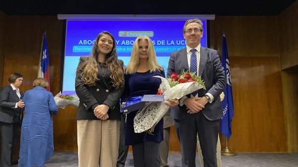 En la ceremonia se entregó el Premio Abogada Destacada en el Sector Privado a la exalumna María Fernanda Juppet Ewing, CEO de Cryptomarket en reconocimiento a su liderazgo y visión en la industria Fintech. En el área del Derecho Público se valoró el aporte de Lilian Leyton Varela, Ministra de la Corte de Apelaciones de Santiago. Ambas debieron ausentarse, pero Fernanda envió unas palabras desde Europa, calificando el reconocimiento como un logro colectivo, instando a los y las asistentes a seguir cambiando el mundo “una locura a la vez”.