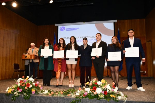 Fueron 39 jóvenes quienes recibieron sus diplomas de término de estudios “El proceso de titulación marca el inicio de la vida profesional de nuestros egresados, en donde deben poner en práctica todo lo aprendido durante sus años de estudios y desafiarse ante los contextos sociales cambiantes y emergentes, incorporando los principios éticos del resguardo de los Derechos Humanos, la justicia social y la integralidad profesional hacia los grupos más vulnerables de la población”, explica la directora de la carrera Judith Guajardo.