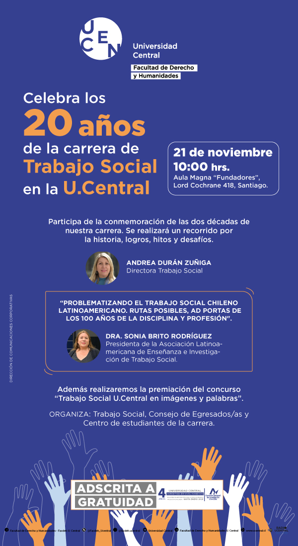 Reserva la fecha para celebrar los 20 años de Trabajo Social U.Central