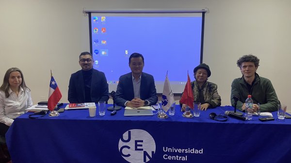 Luego, intervino el Consejero Político de la Embajada de la República Popular de China en Chile, Ma Zhen, quien se refirió al compromiso de China con el desarrollo de la investigación académica y de su vínculo con nuestra casa de estudios: “La Universidad Central de Chile ha estado comprometida hace mucho tiempo atrás con la comprensión y estudio de China. Y la Embajada de China en Chile lo aprecia mucho”, comentó.