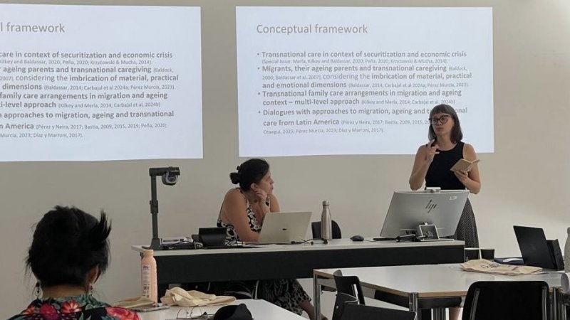 Durante su estadía en Suiza, se llevó a cabo el seminario internacional “Migración y cuidado intergeneracional: perspectivas locales y transnacionales”, además de talleres de análisis de resultados preliminares, una presentación en la Universidad de Ginebra y jornadas de planificación metodológica para los próximos dos años.