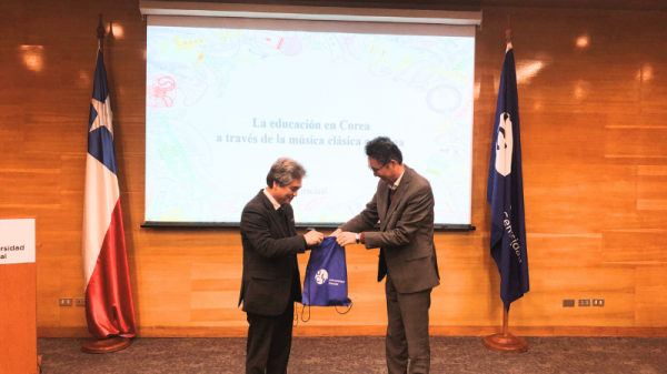 El coloquio se tituló “La educación en Corea a través de la música clásica coreana” y tuvo al profesor Gihong Jun, del departamento de música de la Universidad de Seúl, como invitado especial. El profesor Jun, quien además de ser docente es un destacado concertista de gran trayectoria en el mundo de la ópera, ha desarrollado su carrera como cantante en importantes escenarios de Europa occidental, participando en variados concursos de música docta y ganando notables reconocimientos nacionales, como el Gran Premio para Músicos Coreanos por parte del Ministerio de Cultura de la República de Corea.