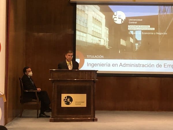 El acto fue encabezado por las autoridades de la Facultad de Economía, Gobierno y Comunicaciones, presididas por el decano Prof. Luis Riveros Cornejo, la secretaria académica, Paz Hernández Manríquez, la directora de la Escuela de Economía y Negocios, Catalina Maluk Abusleme; y el director de la carrera de Ingeniería en Administración de Empresas, profesor Guillermo Fuentes Contreras.