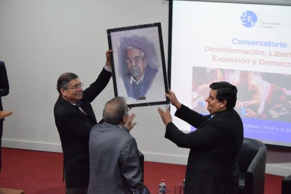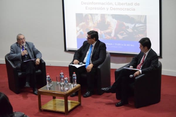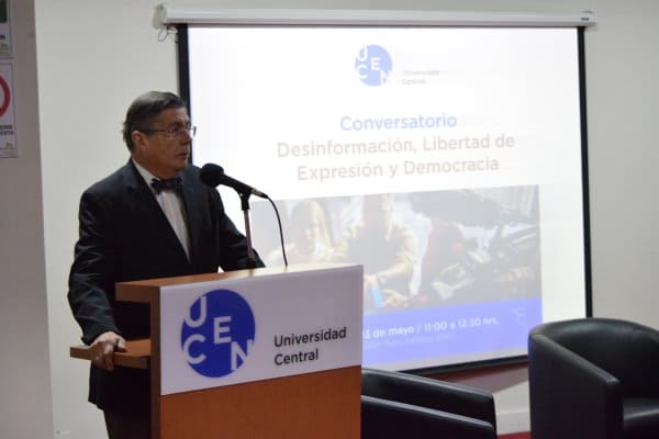Hablar de estos temas fue el objetivo que tuvo el conversatorio "Desinformación, Libertad de Expresión y Democracia", organizado por la carrera de Periodismo y moderado por su director José Miguel Infante, con la participación del Premio Nacional de Periodismo 2015, Abraham Santibáñez, y Gabriel Vergara, director de la Asociación Nacional de la Prensa (ANP).