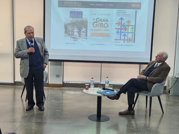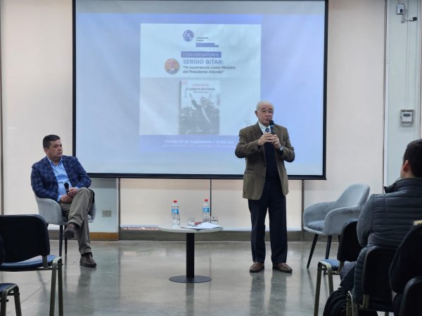 Añadió que "tenemos nuestros espacios con tranquilidad para escuchar a personas como Sergio Bitar, testimonio de su vida, escuchar a los estudiantes que puedan conversar lejos de los gritos, de los slogans, de la palabra fácil, de la descalificación mutua, que no construye. Este mes de septiembre vamos a estar viendo eso en las calles, incluso en el Congreso Nacional. Acá está la instancia para que se produzca esta magia de la conversación, del diálogo, de la reflexión. Y cada uno sacará su conclusión".