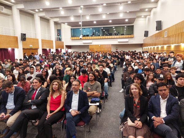 Los más de 300 nuevos estudiantes de la Facultad de Economía, Gobierno y Comunicaciones, que este año comienzan su etapa universitaria en alguna de las nueve carreras que ofrece la facultad, se reunieron hoy en el Aula Magna Fundadores en el marco de la bienvenida institucional.