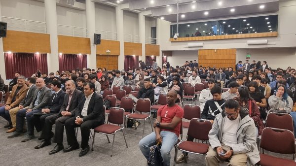 El reconocido empresario chileno compartió su historia y claves del éxito con los nuevos alumnos de las carreras de negocios en el marco de las Olimpiadas del Conocimiento, una jornada recreativa donde los estudiantes compitieron en una trivia por equipos y aprendieron sobre innovación y perseverancia.