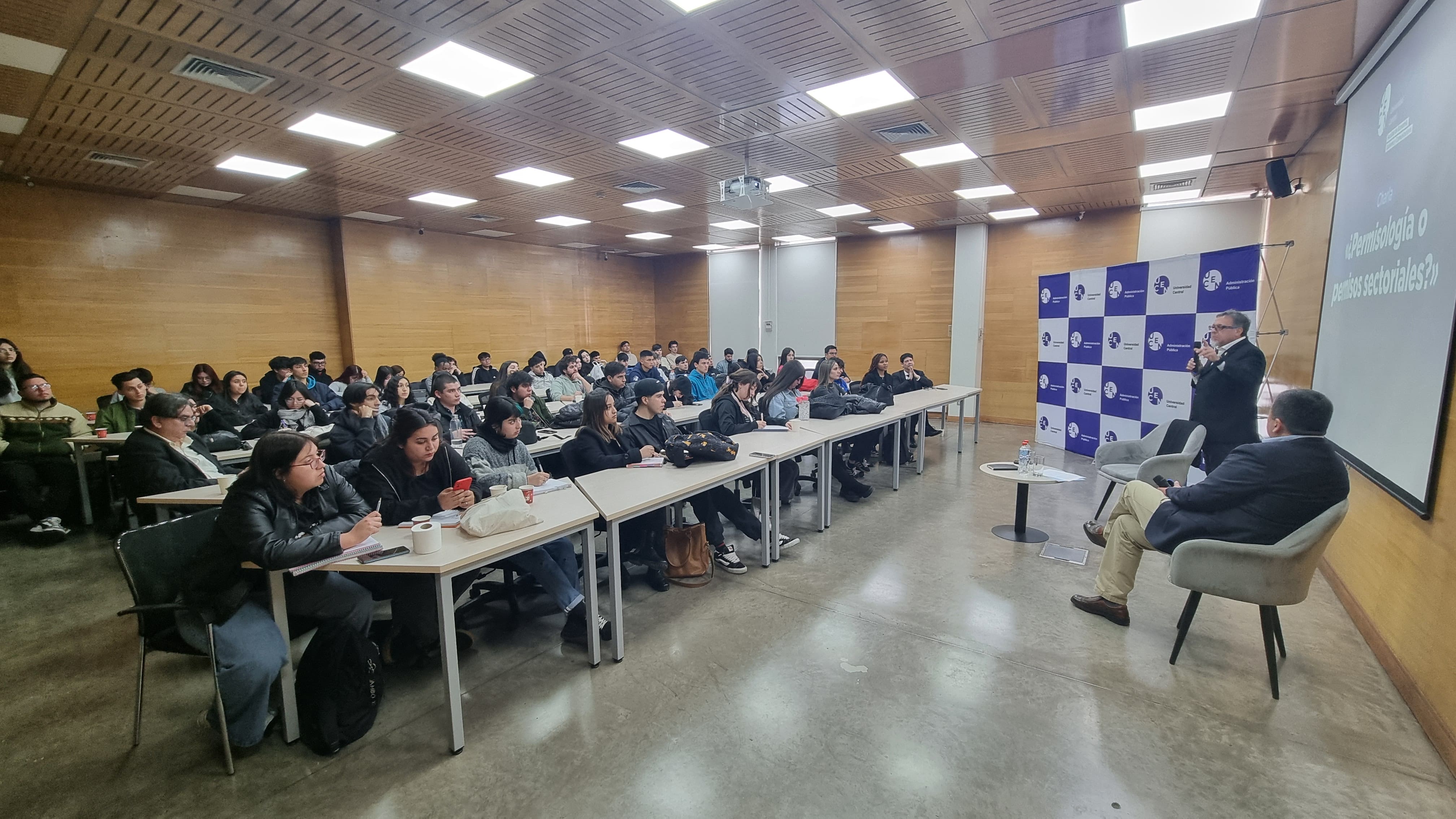 La actividad fue presentada por el director de la carrera, Gustavo Campos, quien destacó la relevancia del tema para la formación profesional de los futuros administradores públicos. “Cuando hablamos de permisología no es un asunto de mera voluntad; hay que buscar el equilibrio, generar la agilidad necesaria, pero garantizar también que se cumpla la normativa”, señaló, enfatizando que las decisiones en esta materia tienen impacto directo en la inversión, los plazos y la protección del patrimonio y el medioambiente.