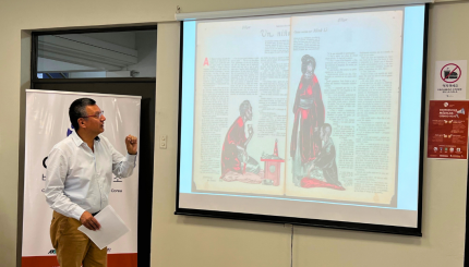 En la actividad se abordó la obra de Mirok Li, el primer escritor coreano con una publicación literaria en español en el continente. La charla estuvo a cargo del Dr. Ricardo Sumalavia, especialista en literatura coreana.