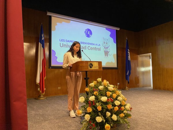 En representación del estudiantado, la estudiante de tercer año de Pedagogía en Educación General Básica, Yulissa Lazcano González, quien dirigió unas palabras a sus nuevos compañeros y compañeras contando sobre su experiencia “Con el tiempo y gracias al compartir con mis compañeros y profesores, me di cuenta de que los valores más importantes de la pedagogía son esencialmente compartidos con nuestra universidad, como la justicia, la solidaridad, la tolerancia y la inclusión, que son valores que nos acompañarán a lo largo de nuestras carreras y harán la diferencia cuando seamos profesionales de la educación”, expresó.