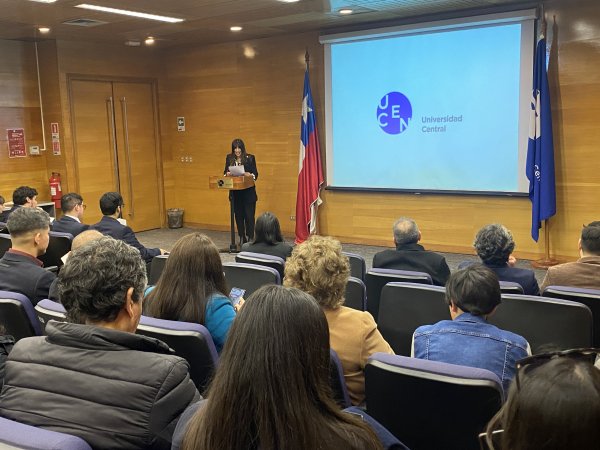 La directora de carrera, Daniela Araya, abrió la ceremonia con un inspirador discurso en el que mencionó los desafíos que enfrentarán los nuevos profesionales en su vida laboral. “El primero es que deberán incorporar los avances de la tecnología, como la inteligencia artificial y el desarrollo del pensamiento computacional. Otro desafío importante, será mejorar los aprendizajes matemáticos de niños, niñas y jóvenes de nuestro país, debido a los puntajes de la prueba SIMCE que hemos visto los últimos años”, señaló.